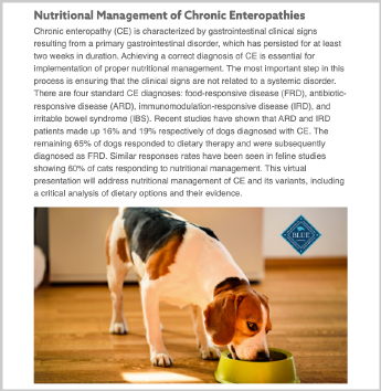 Our missions are aligned: to provide the best science-backed care for the pets we love. To help do that, we know how important it is to stay current on veterinary medicine’s latest advances in nutrition and nutrition-related health conditions. For all who have dedicated their lives to animals and their health, we’ve created a library of continually updated, free CE webinars from board-certified specialists.